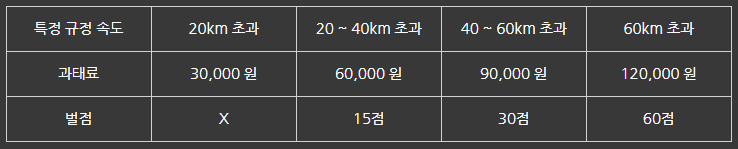 속도위반 과태료 범칙금은 위와 같습니다. 속도위반 과태료가 생각보다 쎕니다.